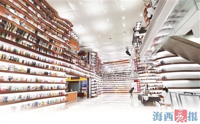 外图厦门书城特色书架似层层海浪,邀读者一同在书海扬帆。记者 陈理杰 摄