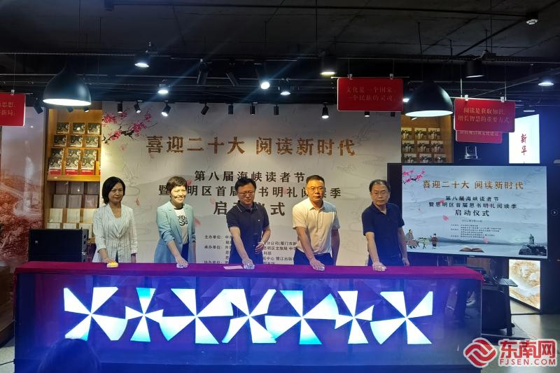 东南网4月23日讯(本网记者 刘玮)4月23日,第八届海峡读者节暨思明区首届思书明礼阅读季启动仪式在中山路新华书店举行。活动以中山·阅埕为主会场、各门店为分会场,重塑新华书店中山门店文化地标,同步推出公益读书会、悦读马拉松、党的二十大主题出版物品读分享会等系列活动,让市民读者参与融入读书活动,共建书香厦门。