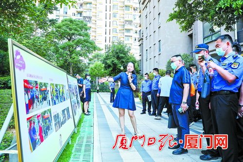 社区相关负责人向参训人员介绍国贸润园文明养犬示范园区建设情况。 (文/记者 王玉婷 通讯员 柯火元 蒲怀泉 图/记者 张奇辉)文明城市,依法文明养犬——5月1日,新修订的《厦门经济特区养犬管理办法》(以下简称《办法》),将正式开始在全市实施,这意味着厦门养犬管理和执法工作,有了更规范的法律规范。 推动全市依法文明养犬风尚形成,切实提升环境品质,市执法局一直在创新、在努力。近日,为进一步规范厦门养犬执法工作,市执法局采取远程视频授课、现场授课、参观交流相结合的方式,开展2022年全市城管系统养犬执法工作培训。干货满满的课程、“零距离”的观摩感受就像及时雨,进一步提升厦门养犬执法工作水平,为厦门营造依法文明养犬良好环境再添新动力。 一场及时雨 执法靠前服务 推动文明养犬风尚形成