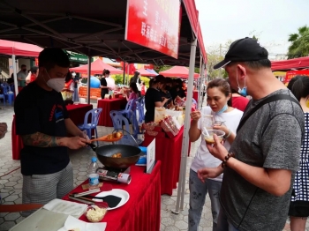 ▲启动仪式现场热闹非凡 “金锣一响,黄金万两” 随着厦门台商投资企业协会会长吴家莹敲响锣鼓,活动正式启动。 热烈开场舞、电音三太子,在充满闽台韵味的节目表演中,来自湖里区的31家台青企业,为居民们全力展销他们带来的特色小吃、特色食品、护肤品、酒水饮料、生活用品、茶叶等280余种台湾特色商品。 “我们的东方美人茶有蜂蜜的芳香,是台湾四大名茶之一,欢迎大家品尝。”参与本次活动的台青黄启荣,正在向到场的居民们推销着自己的招牌茶叶。 他说,这次的活动有官方“背书”、引流,而且直面的是社区一线的居民朋友们,正是企业打好口碑的过程,“我们产品品质过硬,相信能够通过这次活动让更多地朋友们品尝到优质的台湾茶。”