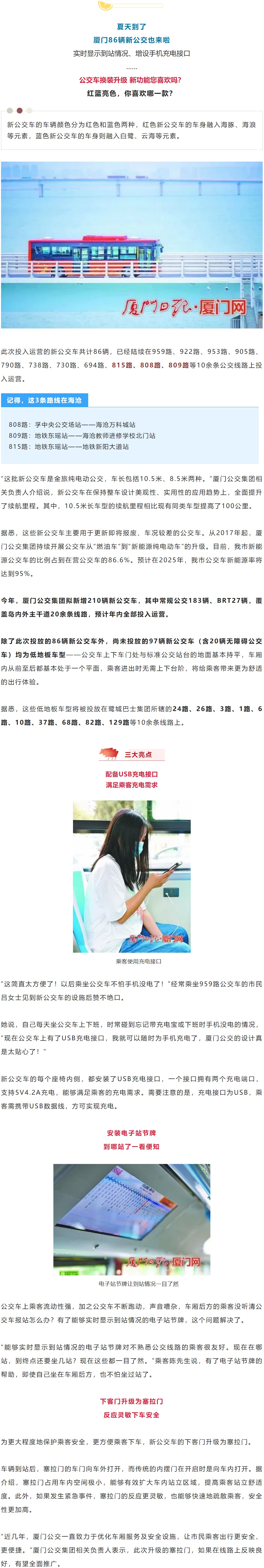 厦门投用86辆装备便民设施新公交 3条路线在海沧