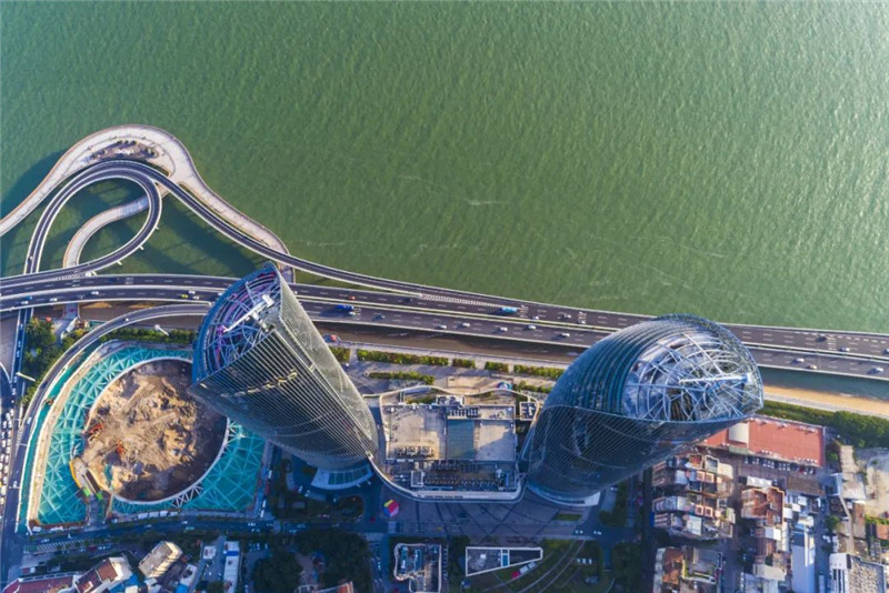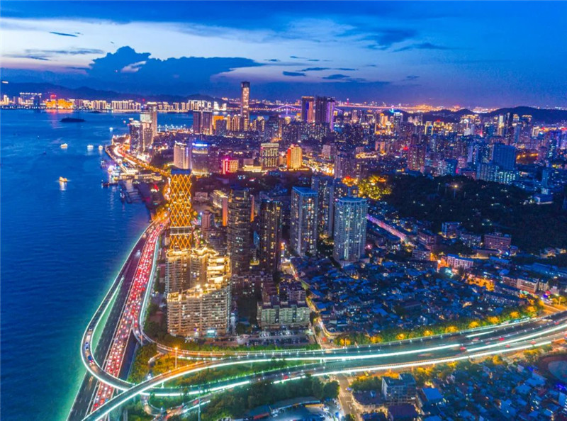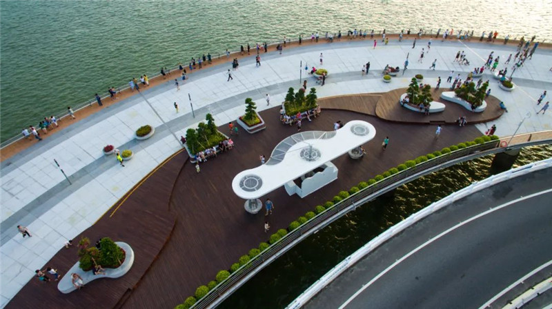 摄影:林进才 它紧贴海面,缓缓地延伸,波浪起伏,简捷流畅的线条,精美灵动的造型。一头是繁华的鹭江道,一头是美丽的环岛路。