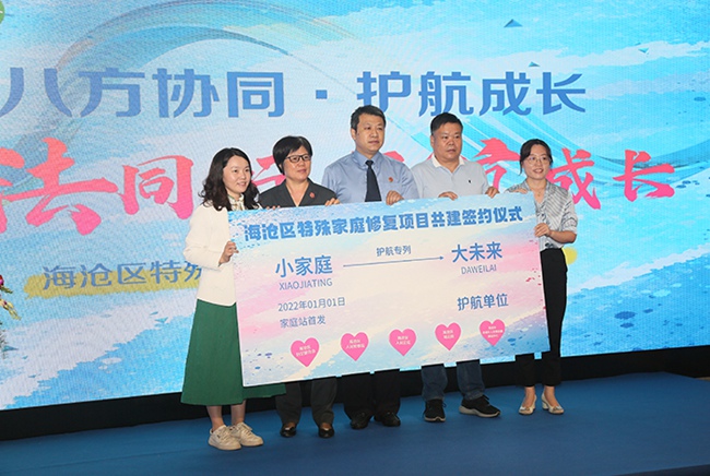 “与法同行、护航成长”海沧区特殊家庭修复项目启动仪式。 首发仪式上,还启动了“与法同行 护航成长”“女企筑梦 护航成长”等促进和保障家庭教育顺利进行的务实举措。“与法同行 护航成长”共建行动,依托区人民检察院、妇联、未成年人思想道德建设中心、人民法院、司法局等单位,为“特殊家庭专列”保驾护航,将持续护航、保障特殊家庭未成年人的成长。“女企筑梦 护航成长”行动,由热心女企业家结对帮扶困境女生,帮助她们实现求学梦想,为她们的美好未来增添一笔温暖的底色。 据了解,本次活动还进行了省级、市级、区级“家庭教育创新实践基地”“特色社区家长学校”的授牌仪式。 |