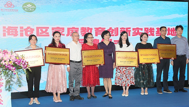 家庭教育创新实践基地授牌仪式。 5月14日,由厦门市妇联、市教育局主办,海沧区妇联、海沧区教育局、市妇女儿童活动中心协办,主题为“鹭岛家庭心向党 同心喜迎二十大”的家庭教育宣传周活动暨“小家传大爱”家庭教育促进法微视频首发仪式在海沧区厦门中心举行。 厦门市妇联党组书记、主席庄海英在致辞中表示,市妇联、市教育局紧紧围绕《家庭教育促进法》职责分工,立足厦门实际,年初就策划了《家庭教育促进法》系列宣传微视频,首发了由鹭岛孩子演绎的微视频和原创主题《厦门·一家人》MV,这是全省首部家庭教育系列宣传视频,通过家庭和孩子的视角,以群众喜闻乐见的多媒体形式,帮助广大父母更好地开展家庭教育,促进未成年人健康成长,让《家庭教育促进法》进入寻常百姓家。