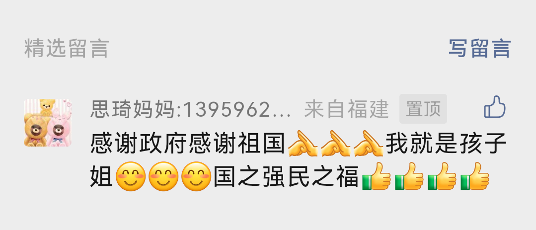 5月22日晚约9点,一则评论出现在“湖里头条”微信公众号去年国庆节的推文里:“感谢政府,感谢祖国。国之强,民之福。”