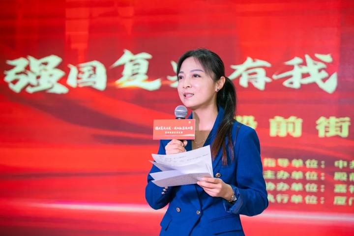 湖里区文化馆副馆长、 湖里区诵读协会副会长 朱玉玲 作赛后总结点评 市委讲师团综合科科长 张琰