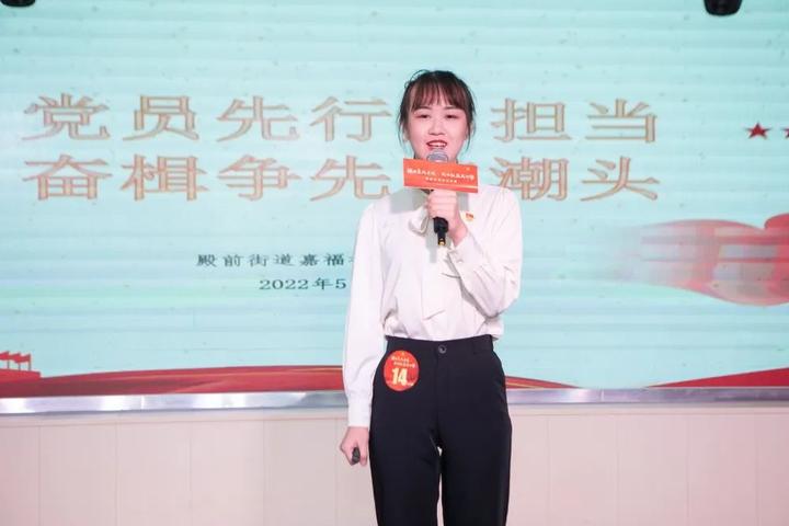 作赛后总结点评 宣讲比赛获奖名单 一等奖 嘉福社区 蔡艺增 神山社区 季昌玲 二等奖 翔鹭社区 张晓艳 高殿社区 汪艳萍 嘉福社区 林志萍 高殿社区 熊梦洁 三等奖 长乐社区 颜雯 兴隆社区 熊麒 北站社区 吴伟 高殿社区 林丹青 长乐社区 郭燕华 翔鹭社区 何芝骅 殿小二在这里 恭喜以上的获奖选手们! 不仅有激动人心的颁奖仪式 万众瞩目的 殿前街道基层理论宣讲轻骑兵 也正式成团啦~ 让我们率先一睹 社区推荐官们的风采吧 成团仪式 由殿前街道党工委委员 王声电 为殿前街道基层理论宣讲轻骑兵队伍 授予宣讲队伍旗帜 由殿前街道党工委委员 王声电 嘉福社区党总支书记、居委会主任 庄丽梅 为殿前街道基层理论宣讲轻骑兵队伍 宣讲员们绶带 同时颁发属于他们的“殿前宣讲徽章”