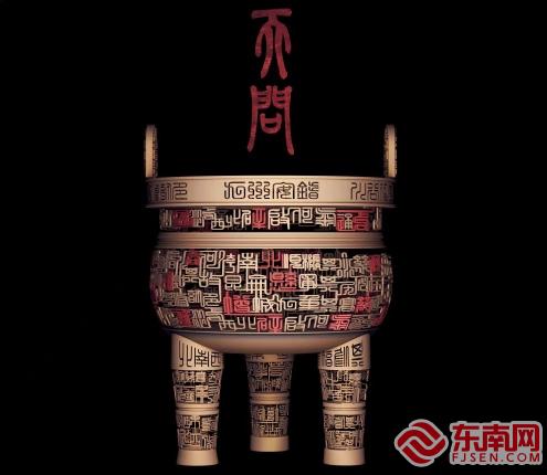 诗哲之花-天问鼎(思明区融媒体中心供图) 将屈原的千古至奇之作《天问》、篆书、楚青铜大鼎三者结合在一起,做成3D数藏,可放大、翻转欣赏。