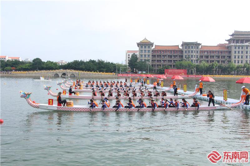 2022海峡两岸赛龙舟活动300米直道赛决赛现场,各队伍蓄势待发。东南网记者 李霖 摄