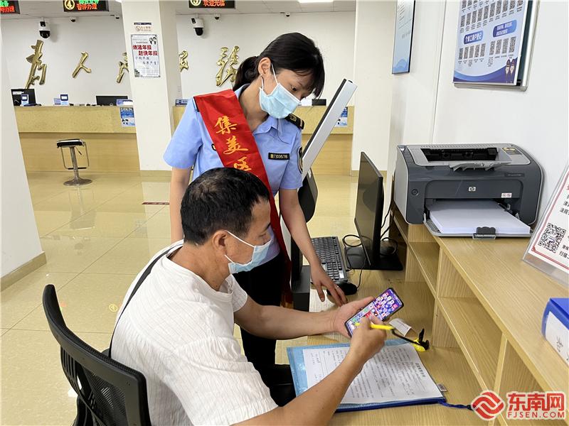 市场监管人员为办事群众提供服务(集美区市场监督管理局供图) 暖心服务全力护航 “小窗口”擦亮文明窗 为打造文明、清新的校园周边环境,今年以来,集美区市场监督管理局加大对校园周边检查整治力度,对校园周边200米范围内的食品经营小店、餐饮单位、学校食堂、“小饭桌”进行全覆盖监督检查,确保无三无食品,无恐怖、迷信、低俗、色情等玩具、文具、食品和出版物销售。截至目前,市场监管人员已检查校园食堂423家次,检查校园周边餐饮单位378家次,消除食品安全隐患39处。 在督促餐饮单位严格落实各项食品安全制度的同时,集美区市场监督管理局积极开展文明餐桌、光盘行动宣传,引导商家和市民养成节俭、健康、绿色、文明的餐饮习惯;组织干部职工家庭深入田间地头,开展“学农耕、惜农食”文明餐桌亲子主题活动,引导干部职工及家属从自身做起,做文明餐桌的宣传者和践行者。今年以来,集美区市场监督管理局共开展文明用餐宣传活动2场,发放文明餐桌宣传桌贴5000张,让饭后打包、使用公勺公筷成为餐桌文明的新风尚。 “小窗口”擦亮文明窗。集美区市场监督管理局在各办事服务窗口设置志愿服务点,引导办事群众有序排队、文明办事,为办事人员提供咨询服务,同时不断优化窗口服务质量和工作水平,用热情微笑的指引、有诉必回的态度、高效贴心的服务,让办事群众感受到文明的温度。目前,集美辖区年报率已达81%,居全市6区前列。