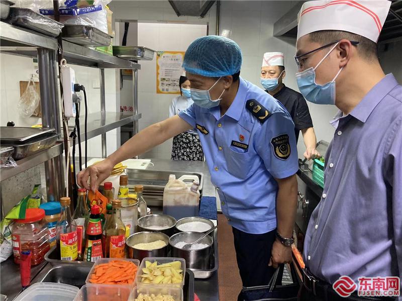 市场监管人员对餐饮单位后厨进行监督检查(集美区市场监督管理局供图)