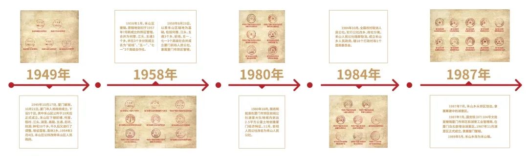 本次展览中的“公章备忘”部分,通过公章及馆藏文献讲述了湖里的历史沿革变化。 接着,以“领导关怀”“生产生活”“特区建设”“文体艺术”四部分,采用照片新旧对比及馆藏文献的形式,讲述了改革开放以来湖里各方面翻天覆地的变化。