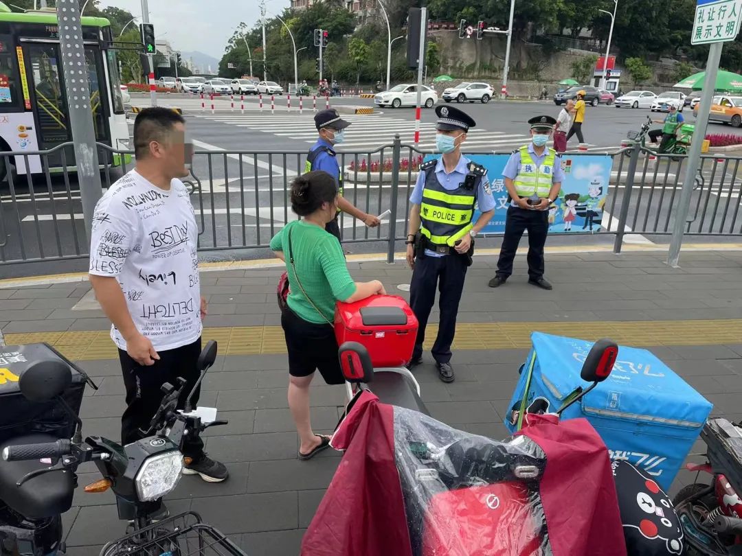 在殿前街道火炬路至嘉禾路路口处,有个别群众因电动自行车被查扣,自己被处罚,产生不满情绪,殿前派出所民警林传锋耐心劝导,主动做好安抚工作。