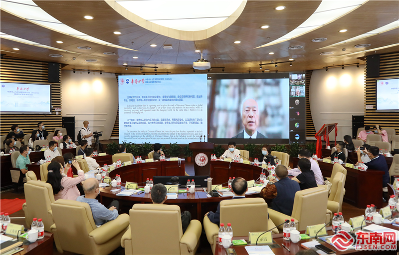 与会嘉宾为研究院揭牌(华侨大学供图) 东南网6月11日讯(通讯员 吴江辉)6月11日,华侨大学华侨华人与区域国别研究院揭牌仪式暨“百年大变局下的华侨华人与区域国别研究”学术研讨会,在该校厦门校区举行。这是华侨大学坚持以侨立校、为侨服务的重要举措,也是推进新文科建设与发展的创新探索。 当天,福建省委统战部、福建省侨联等有关方面负责人共同为研究院揭牌。香港大学原校长王赓武、中山大学党委书记陈春声、日本京都大学教授滨下武志、北京大学博雅讲席教授钱乘旦、中国人民大学国际关系学院原院长陈岳、华中师范大学文科资深教授徐勇等海内外著名学者以书面、在线或视频方式致辞祝贺。境外20多家学术机构和学者纷纷发来贺信,来自国内高校和研究院所的30余位知名学者出席。 华侨大学党委书记徐西鹏代表学校致辞,介绍了成立研究院的背景、目的和特点。华侨大学校长吴剑平主持揭牌仪式。 作为东亚和东南亚研究的著名学者,92岁高龄的王赓武先生在致辞词中表示,深入研究新形势下的全球华人,正当其时。同时他也热烈祝贺吴小安教授及其研究团队勇担重任。国际著名的区域问题研究专家、京都大学教授滨下武志在致辞中说:“海外华人是跨学科课题,意义重大,RIGCAS院名极具开拓性和挑战性;衷心希望在吴小安教授的带领下,RIGCAS发展成新时期华侨华人研究的全球中心。”