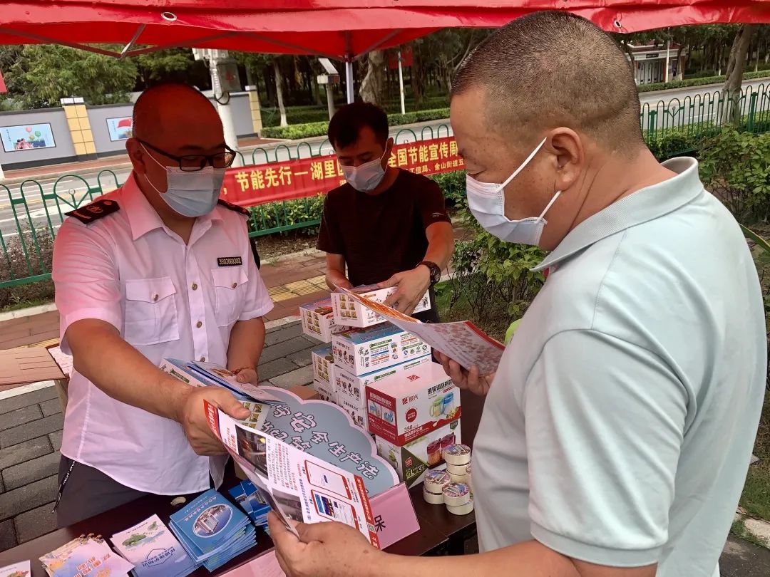 禾山街道排查各类生产经营单位4247家次,发现隐患1725处,已整改692处,签订《落实企业安全生产责任书》5000余份。开展联合执法检查24次,查处“三合一”场所71家、燃气餐饮场所5家,整改率100%;约谈火灾隐患场所负责人23人。 下一步,禾山街道将通过宣传、排查等方式,列出清单、定出措施。严格按照“管行业必须管安全、管业务必须管安全、管生产经营必须管安全”的要求压实各方责任,明确时限,将隐患消除。 宣教行动,防范意识驻人心 金山街道各社区积极开展安全生产月宣传活动,在辖区人员密集场所、地铁口等场所摆摊设点开展宣传,向过往群众宣传安全生产、消防安全、燃气安全等安全常识。