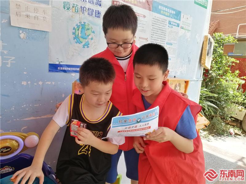 新村社区新时代文明实践站“依法禁毒手牵手,和谐社会心连心”国际禁毒日主题课程现场,小志愿者向小朋友宣传禁毒知识。(程金兰 摄)