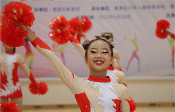 图二:健美操、啦啦操比赛现场。 赛事纷呈 激发孩子参与兴趣 今年暑假,厦门十中七年级的林蓉,将代表厦门市参加省运会。从区级乒乓球赛脱颖而出的她,在2019年入选了国家集训队,成为乒乓球界的“明日之星”。 在集美,纷呈的体育赛事,是每一个孩子期盼的盛事。由区教育局主办,区少体校承办的11项区级赛事,每一年都能得到孩子们的踊跃报名。即使是疫情下,集美区也努力创造条件,确保一项不落完成赛事,满足每一个孩子的期盼。从激发兴趣,到形成志趣并享受乐趣,在体育教学活动中,集美区注重增加游戏与比赛等竞争要素,让学生在体育锻炼中享受竞争与表现的乐趣。今年上半年举行的健美操、跳绳、武术等6项比赛,就有100 多所学校的3213名学生报名参赛。 值得一提的是,区教育局近日重新修订出台了《中小学体育竞赛积分管理办法》,并将其作为素质教育评估的重要一项,以积分制激励辖区各校重视体育教育工作。而此前,区教育局已制定了《集美区 “教会、勤练、常赛” 视角下的学校体育课堂教学改革整体实施方案》,用制度引领,指导全区各中小学做好体育教育工作。