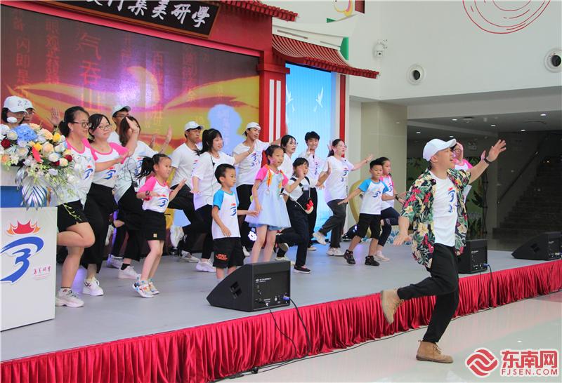 研学营青少年与亲子代表跳《本草纲目》为启动仪式预热。东南网记者 李霖 摄 “我家就是两岸融合呀!”台湾新北人简瓊容来厦求学后,嫁给了“厦门郎”,把家安在了集美。今年,她带着8岁的女儿参加亲子研学营,“除了拓宽孩子的视野,更希望借此机会认识更多的两岸家庭,增进交流。” 据悉,本次研学体验活动为期3天2夜,分为两岸青少年主题研学营与两岸亲子研学营,以“两岸共同记忆”为主题,整合和升级优质研学课程,设立主题鲜明、内容丰富的两岸研学新线路,两岸青少年和亲子家庭将搭乘“闽台时光机”,开启两岸记忆之旅。 “集美这个地方,我已经学习生活了一年多,最大的体会就是集美变成了一个两岸融合的大家庭。”来自台湾彰化的庄家乐是此次活动的研学助教,他表示,筹备过程虽然辛苦但充满兴奋,也深刻体会到“两岸本是一家人”的真谛,“期待在研学中与两岸小朋友们碰撞出不同的火花!”