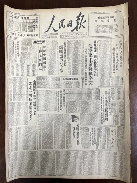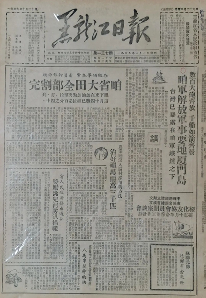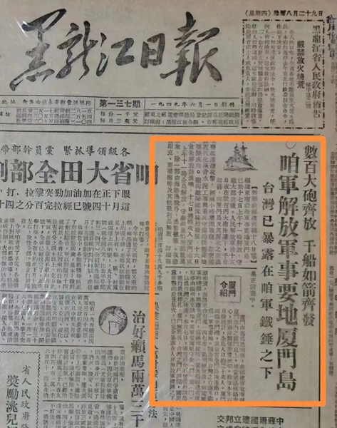 参观结束后,傅志雄向神山教育基地赠送了一份珍贵的礼物——1949年10月20日的原版黑龙江日报,上面详细记载着题为《数百大炮齐放 千船如箭齐发 咱军解放军事要地厦门岛》的珍贵史料,丰富了基地神山纪念馆的馆藏。