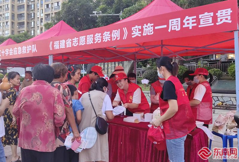志愿者向群众宣传文明创建知识(东南网记者 夏菁 摄)