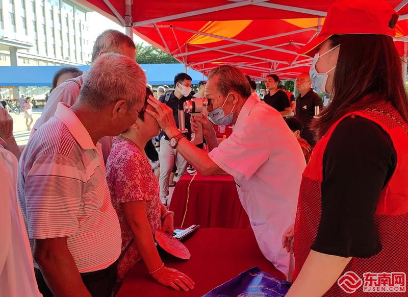 志愿者们唱响《翔安志愿者之歌》(东南网记者 夏菁 摄) 志愿者们用行动唱响奉献之歌 活动现场还发布了爱心公益原创主题曲——《翔安志愿者之歌》。来自翔安多家单位的9名爱心文艺志愿者共同演唱,同台的小小文艺志愿者通过手指舞演绎了这首歌曲。 “我们的初心是希望通过音乐,融入志愿服务精神,将其传播出去,让所有的志愿者能够产生共鸣。”《翔安志愿者之歌》作曲人林振富表示,今后,也希望能够创作更多关于文明实践、志愿服务的歌曲。 翔安区还为志愿服务大赛获奖者颁发获奖证书,其中新圩小毛驴志愿者服务队现场展示了服务项目情况。 此外,活动现场还邀请13支志愿服务队到场,为居民提供配钥匙、修眼镜、义诊等公益服务。同时,主办方还准备了多个文明创建知识抢答环节,传递厦门市创建全国文明城市的有关知识和重要意义,让更多居民了解创建工作、创建标准,推动形成“创典范城、做文明人”的良好社会风气。