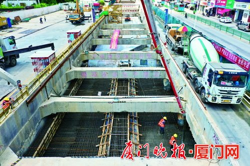 内茂站主体结构顺利封顶。 厦门晚报讯(文/记者 彭菲 通讯员 朱俊博 图/记者 陈嘉新)今天上午,随着最后一块顶板混凝土完成浇筑,6号线(林埭西至华侨大学段)工程内茂站主体结构顺利封顶,这也标志着6号线林埭西至华侨大学段工程全线13座车站主体结构全面封顶。 6号线林埭西至华侨大学段工程起自海沧林埭西,止于华侨大学站,全长18.8公里,设13座地下车站。据介绍,内茂站地处杏林重要进岛通道,建于杏林老城建筑物密集区内,是该段工程唯一采用半盖挖法施工的车站。施工现场两侧的建筑物距离最近的仅2米,站内管线多达200多条,迁改耗时近一年半。今日主体结构封顶之后,将继续推进内茂站附属结构的施工。 记者从厦门轨道集团了解到,截至目前,轨道6号线林埭西至华侨大学段工程13座车站主体结构全部封顶,13个区间10个双线贯通,铺轨作业同剩余土建工程同步推进。下一步,将继续推进6号线(林埭西至华侨大学段)全线年内“洞通”的节点目标,为加快铺轨施工及后续机电装修打下基础。 |