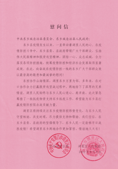湖里区委区政府也第一时间发去慰问信↓↓
