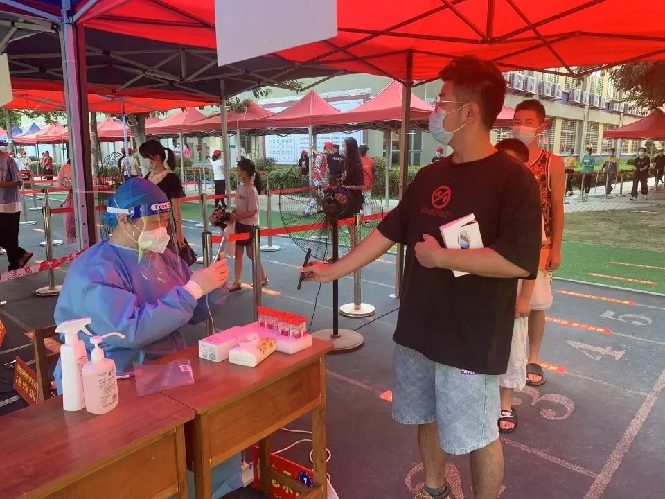 根据厦门市应对新冠肺炎疫情工作指挥部〔2022〕第24号通告将于8月17日-19日,在全市开展连续三天每天一轮,全员核酸检测。 在湖里区各社区核酸检测点,湖里纪检人已下沉在社区近一周,与一线人员并肩作战。聚是一团火,散是满天星,让我们跟着湖里纪检人,深入到抗“疫”一线。 特写一 跟着太阳一起起床 清晨6点,作为第一批上岗的信息录入员,区纪委监委干部洪晓文早早到达湖里区五缘实验学校核酸检测点,“第一次当信息录入员,为了能早点赶来做准备,今天跟着太阳一起起床!”领物资、领装备,套上闷热的隔离服,熟悉好信息录入流程,洪晓文就立刻投入到工作中。
