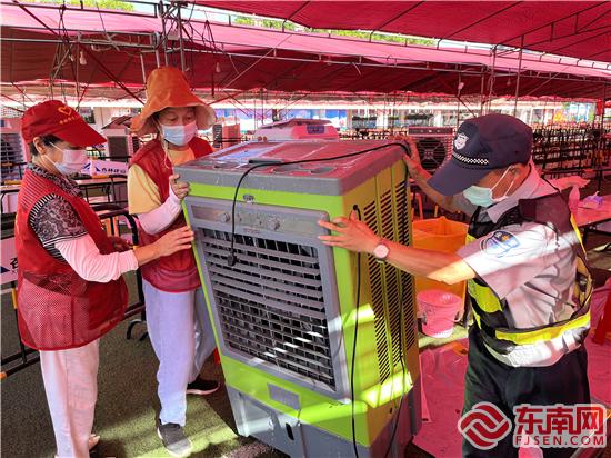 采样点配备空调、风扇、冰块等降温物资(曾营社区新时代文明实践站供图) 细心保障 架起防疫“连心桥” 注重疫情防控服务后勤保障工作,统筹各方资源,把医护人员、志愿者的身心健康和自我防护放在首位,确保防疫物资保障到位,共筑疫情防护墙。 实践站社工们与时间赛跑,全力保障检测台、便民点等点位各项物资不断链,及时做好物资补充,确保采样工作快速有序。 宁海社区、银亭社区等多个实践站在核酸采样出入口设立爱心便民点,为有需要的居民发放矿泉水、正气水、菊花茶等解暑用品,为前来采样的居民送去“清凉”。 |