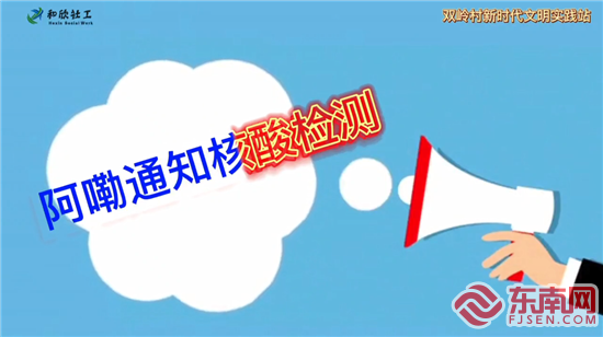 闽南语防疫知识顺口溜视频(双岭村新时代文明实践站供图) 花样宣传 发出防疫“最强音” 为做好防疫科普动员工作,各站点通过沿街串巷、敲门走访、喇叭循环播放等多样的宣传方式,提醒居民按时参与全员核酸;结合微信群、公众号、短视频等平台,实时转发权威信息,更新疫情防控动态。 双岭村新时代文明实践站自制闽南语防疫知识顺口溜,以居民易于接受的方式传播科学防疫小技巧,普及疫情防控政策知识,提升居民个人防护能力。田头村新时代文明实践站社工阿雅精心制作了闽南语版防疫视频,号召广大居民积极参与核酸检测。