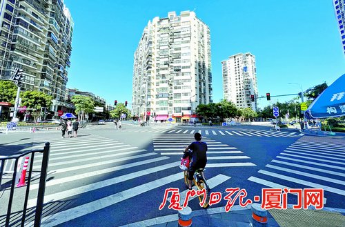 海沧新增对角斑马线 市民过街更方便 交警提醒:右转车辆需根据红绿灯转向