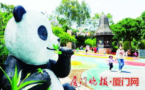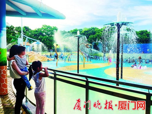 厦门儿童公园 李晓辉摄 海沧 挑战性游戏让孩子动起来 入园游客限定3000人 昨天,记者走进海沧湖东北侧的厦门儿童公园,欢乐戏水区最热闹。高耸的水桶倒下一桶水,粉色的“鸵鸟”竟然从翅膀喷出水花,还有各种形状不一的喷淋设备,小朋友或打水炮或追逐,开心极了。 儿童乐园不同于传统游乐场只是满足单纯游戏的功能,通过富有挑战性的游戏方式,让孩子们运动起来,锻炼他们的活动能力、平衡能力和协调能力。 厦门儿童公园园区免费开放,部分游乐项目收费。海沧城建集团负责该公园的管养,公园负责人说,公园实行限客措施,大门口的电子屏实时统计,入园游客达到3000人时便会进行道闸控制,采取“一进一出”的方式接待游客。