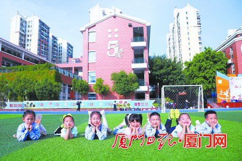 龙湫亭实验学校的孩子们在课间休息时间活动。(厦门日报记者 林铭鸿 摄)