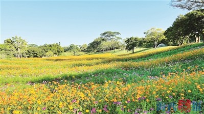 惊艳!4000平方米网红花海上新 植物园西山园内波斯菊、硫华菊竞相开放,花期将持续至10月底