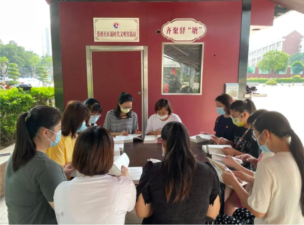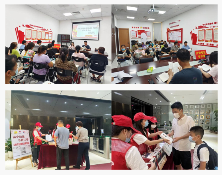 通过集中学习与个人学习结合的形式,社区党员干部在研读《习近平谈治国理政》第四卷后一起交流,大家结合工作实际畅谈收获感想;社区党委、新时代文明实践站还来到东方财富广场写字楼一楼大厅开展“益起阅读,书香江华”全民阅读公益赠书活动,让红色思想得到广泛传递。 06 吕厝社区学习会