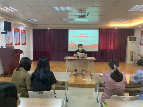 学习正当时 9月,江头街道及各社区 开展学习《习近平谈治国理政》 第四卷专题宣讲活动 在“学、思、讲、宣、践”中 掀起阅读浪潮 【党建引领,学深悟透】 用党的创新理论最新成果武装头脑 街道和社区党组织通过党课形式 为党员干部们深入解读 中国之路、中国之治、中国之解 01 江头街道学习会