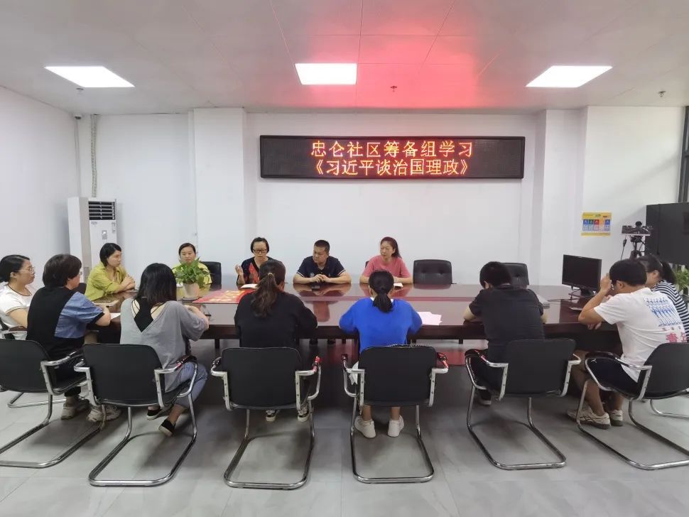 在新时代文明实践站,党员干部们认真研读着《习近平谈治国理政》第四卷所有篇目,并抽选与会成员进行朗读,在其乐融融的氛围里,领会第四卷蕴含的真理、哲理、道理、学理。 12 忠仑社区筹备组学习会