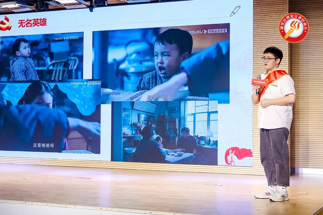 “每当这个胜利的日子里,我都会想起用生命换来和平的人们……”伴随着视频《红纱巾》的缓缓歌声,本次活动主持人杜蕊上台拉开此次宣讲活动的序幕。