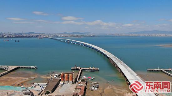翔安大桥航拍图(中交一航局供图) 翔安大桥 跨海大桥连结岛内外 交通路网迭代升级 采访团最后一站走进了在建的翔安大桥。大桥全长约12公里,其中跨海桥梁长约4.5公里,设计时速80公里,是继港珠澳大桥之后国内第二座、福建省首座全桥预制装配化跨海大桥,预计于2023年春节前通车。 走进翔安大桥施工现场,绑扎钢筋、浇筑混凝土、清理道路、焊接钢管……建设者们正在紧张而有序地施工,机声隆隆,高高的吊车吊起钢材,一辆辆土方车来往繁忙,这条“巨龙”已慢慢“显露真身”。 “装配化施工,就是将构件在陆地上预制好后,运到海上的施工现场进行组装,我们看到的桥梁下部结构包括预制墩台、墩身和盖梁三部分,就像‘搭积木’一样拼接而成。”中交一航局翔安大桥A3标项目部工程部长方超边走边介绍,今年9月12日,翔安大桥主桥成功合龙,目前项目隧道已完成主体设计总量的75%;海中主线桥钢箱梁吊装全部完成,正在安装护栏等附属设施,同时沥青路面摊铺也同步交叉作业。 翔安大桥项目建成后,将进一步完善海西经济区路网和厦门市城市路网,辐射、带动和服务岛外翔安发展,对厦门市加快建设“一带一路”国家物流新通道和国际综合交通枢纽城市具有重要意义。 |