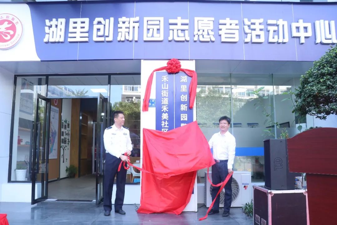 在众人共同见证下,湖里区委副书记陈晓东,湖里区副区长、公安分局局长戚乐健为禾美社区综合网格工作室暨湖里创新园警网融合工作站揭牌。