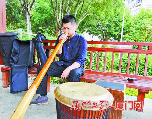 非洲鼓 厦门日报讯(记者 张玉榕(除署名外)《一生所爱》演奏到一半,黄身宁突然将手碟放在一旁,嘴里嘟囔了句:“对了,加上别的乐器更好听!”随后转身进屋搜罗一番,拿出多件小巧的乐器,给这首曲子加起了“佐料”。短短几分钟,他轻松转换演奏了迪吉里杜管、沙鼓、口弦等多种乐器…… 黄身宁今年33岁,是电力产品研发领域的项目质量负责人,平日里给人的感觉是标准的理工男,沉默少言。但工作之余,自学了十几种小众乐器的他,换掉格子衬衫,戴上民族风的项链和配饰,游走在演出场合。 非洲鼓表演赚足掌声 在接受采访的时候,黄身宁始终手不离乐器。提起自己的音乐启蒙,他说:“我出生在农村,小时候家里没条件让我学音乐。直到高中学了吉他,我才跟乐器结缘。” 上大学后,黄身宁是班级干部,负责组织班级年度文艺汇演。他和舍友初步确定成立2人组合,表演吉他弹唱。考虑到仅有吉他弹奏略显单调,他提出加入非洲鼓配合,演出节目效果会更好。 “一些丽江歌曲大量使用非洲鼓伴奏,改变了民谣的配器方式,效果特别好。我很喜欢的作家——大冰把非洲鼓演奏得出神入化,着实让人着迷。”黄身宁的提议得到同学的认可。大家二话不说买了非洲鼓,当时非洲鼓的教学资料非常少,加上黄身宁不是音乐科班出身,自学起来非常吃力,但靠着一股执着劲,他摸索出了一套自学方法,两个多月后渐渐入门。非洲鼓在当时十分小众,演出当天瞬间吸引大家的目光,反响热烈。之后,黄身宁一发不可收拾,开启了学习小众乐器之路。 不少小众乐器由于过于新颖,目前没有人定义玩法,发挥空间更大,不同人可以用不同的方式演奏它们,更能表达自己的情绪。黄身宁说:“不会识谱、不精通乐理未必就不能玩音乐。我们不应该让谱子束缚住我们的想象力。” 到各地旅行淘小众乐器 黄身宁的家更像是音乐工作室,到处放着大众不能轻易叫出名字的乐器。沙发上搁着4个手碟,由金属制成,就像两口直径约50厘米的“大锅”焊在一起,凹凸不平。黄身宁随手拍打了一下,干净空灵的声音便弥漫了整个空间,瞬间让人安静下来。沙发边立着1米多高的“空心竹子”,这个乐器叫迪吉里杜管;巴掌大小的节奏沙球被挂在包包上,像精美的挂件;口弦、爱尔兰哨笛、拇指琴等体型“娇小”的乐器则被收纳在房间的角落。 前前后后数起来,黄身宁家中放了10多种乐器。这些小众乐器,是黄身宁花了近10年一件一件从各地买回来的。有些乐器靠网购就能买到,但更多时候则需要四处奔波,去北京、深圳、云南等地的音乐工坊碰运气。黄身宁自嘲:“我现在养成了一个习惯,哪里有音乐工坊,我就到哪个地方旅行。这个手碟就是从深圳淘回来的。” 全靠网上查材料学习演奏 由于会演奏小众乐器的人不多,市面上也很少有这类的培训班,很难拜师学习。在一次旅行中,黄身宁意外在一个音乐工坊,听到音乐爱好者吹奏澳大利亚土著部落的传统乐器迪吉里杜管,“嗡嗡”的声音一下子就打动了黄身宁。他现场学习了几分钟,就把这乐器带回了家。 回到家后,黄身宁找了一圈都没有找到线下培训课,只能在网上看视频学习,依葫芦画瓢慢慢尝试。由于迪吉里杜管没有指孔,要用鼻子不断吸气,通过嘴巴呼气,最后震动嘴唇吹进迪吉里杜管里,只能通过变换嘴巴的形状改变音调。黄身宁试了几个小时,乐器终于有了声儿,但声音像极了家里水壶烧开了的声音。他没有放弃,在网上论坛请教专业演奏人士,花了近2个月时间,逐渐掌握了演奏技法。“当时学得嘴唇都麻了。”黄身宁说。 在黄身宁家中,类似迪吉里杜管这样的小众乐器还有很多,学习这些乐器大都找不到线下培训机构,只能在网上搜索、模仿。 想让大家知道乐器王国另有乾坤 让黄身宁触动比较深的是,早期学习小众乐器时,很多爱好者通过论坛交流。3年前,还有一位来厦求学的韩国留学生,通过网络联系到黄身宁,并线下见面学习了半年的手碟和非洲鼓。 黄身宁说:“每件乐器的背后都有很多故事,都是一个民族文化的结晶。很多小众乐器正从人们的生活中消失,这些艺术得不到传承,让人惋惜。”黄身宁也因此萌生了推广小众乐器的想法。近年来,他活跃在一些活动中,他曾去婚礼演奏,用手中的乐器为新人送去悦耳的祝福;他也常去公益音乐活动演出,甚至还办了不下50场小众乐器音乐会。 黄身宁带着这些乐器出门演奏的时候,时常成为人群中的焦点。有一次他背着手碟去演出,有人问他为什么背“锅”出门。碰到这种情况,黄身宁啼笑皆非之余,总是不厌其烦地向人们科普小众乐器,“我想多给大家科普一下,激发大家对小众乐器的兴趣,让他们知道,乐器有千千万万种,也就有千千万万种美妙的声音。” |