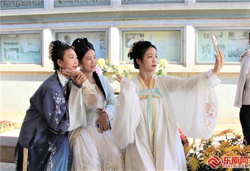 菊花展吸引汉服爱好者们前来观赏、留影(东南网记者 李霖 摄)