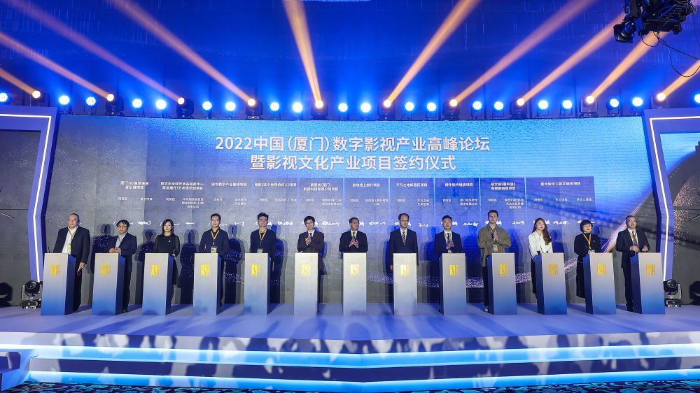 图为2022中国(厦门)数字影视产业高峰论坛现场。 在本届电影节重要配套活动——2022中国(厦门)数字影视产业高峰论坛暨影视文化产业项目签约仪式上,超过50个影视产业项目落地签约,签约金额逾150亿元。 《山海情》《绝密使命》两部电视剧同时荣获第33届中国电视剧飞天奖,电影《陈嘉庚》被列为国家重大题材电影,《血战松毛岭》入选迎接党的二十大精品网络视听节目推荐作品……