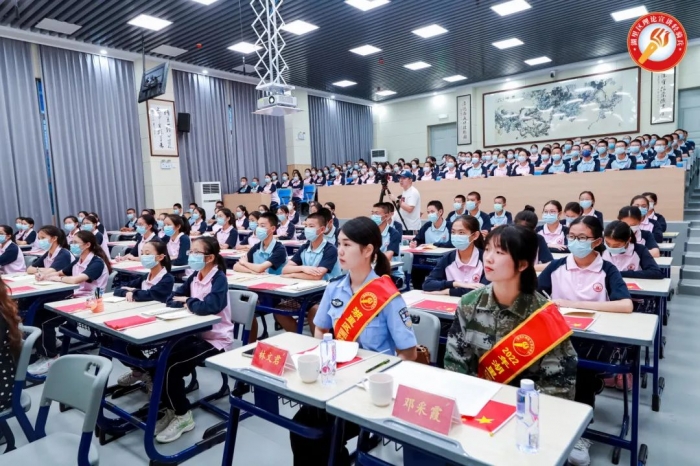 为加强新时代全民国防教育,传承红色基因,帮助青少年进一步增强关心国防、热爱国防、建设国防、保卫国防的意识,厦门市第三中学约200名师生代表到场聆听宣讲。