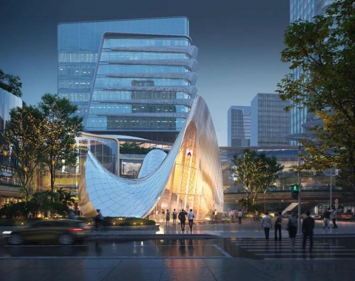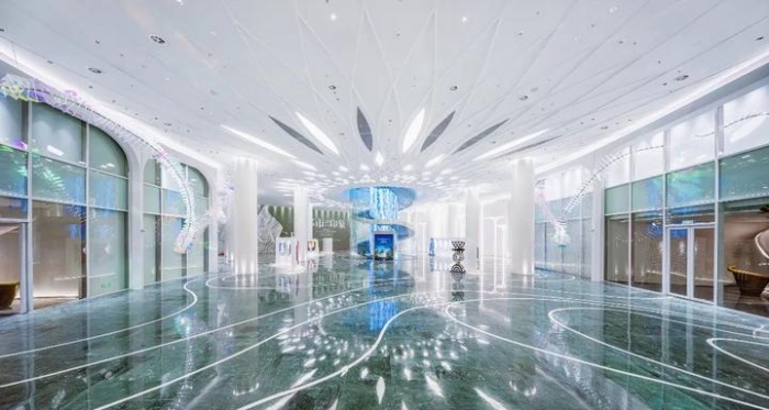 惊喜遇见·“光之森林” 抵达湿地公园站点后,映入眼帘的是面积约6000平方米,挑高约9米,以“光之森林”为主题设计建造的湿地公园TOD城市客厅。