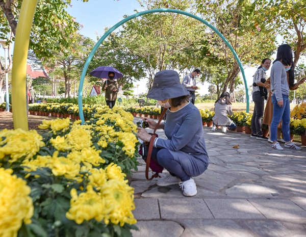 图二:菊花展吸引不少市民前来游览。(林志杰 摄)