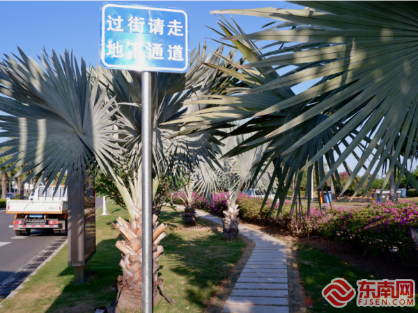 增设连接地下通道和公交车站的石板材园路(厦门市交通局公路中心供图) 东南网11月16日讯(本网记者 刘玮 通讯员 王兆樑 张颖)近日,不少厦门市民发现,环岛路的地下通道口新增了连接地下通道和公交车站的石板材汀步园路,通道周边还“上线”了主动发光标志牌。 此前,在环岛路,市民游客从公交站到地下通道有两种方式,要么绕辅道行至地下通道,要么“抄近路”横穿踩踏绿化带。为此,厦门市交通局公路中心直属公路部门从以人为本的角度出发,在海悦山庄海韵台、黄厝海滨等公交站旁的绿化带内分别“开辟”出72平方米和48平方米的石板材汀步园路。 花间小径直通地下通道,既与环岛路原有的绿化景观效果保持和谐,又消除了行人经由辅道、混行车道带来的安全隐患,为市民游客提供了极大方便。同时,直属公路部门还在辅道斑马线位置设置了“地下通道”指引标志牌,简洁明了指示地下通道的方向和距离,帮助市民游客快速找到人行地下通道。