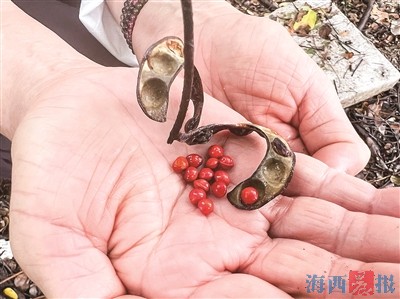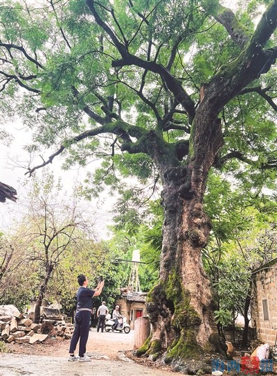 海红豆树果实。记者 洪艳艳 摄 海西晨报讯(记者 洪艳艳 仇慧亮)“红豆生南国,春来发几枝。愿君多采撷,此物最相思。”唐代诗人王维的诗句,为红豆赋予了相思缠绵的唯美色彩。近日,同安区莲花镇400多岁的海红豆树又结果了,在社交平台引发关注。昨日,记者实地探访,带您了解这株古树的“前世今生”。 这株古树位于张厝村村口,是厦门市绿化中心登记在册的、树龄最大的红豆古树,也是福建省仅存的一株海红豆古树。昨日,记者在村民叶福祥的带领下,找到了这株古树。它粗壮挺拔、参天而立,足有四五层楼高,直径两米多,5人合围才能抱得住。 在树干旁,记者发现了同安区绿化委员会于2009年设立的告示牌,根据上面的记载推算,这株海红豆树树龄达437年。树干上还挂着一块同安区人民政府颁发的“福建省古树名木保护牌”。 据介绍,每逢农历十月,这株海红豆树就会结果,树叶间总能看到一个个红豆荚。红豆荚成熟开裂时,不时会有红豆掉落。村里的老人小孩常到树下捡拾红豆种子,这些红豆鲜红圆润,且富有光泽,具有一定的药用价值。 “听我父亲说,在他小时候,这株树就在这里了。”60多岁的叶福祥说,这株树也被当成“月老树”,经常能看到一些年轻情侣、市民游客慕名前来,捡几颗相思豆带回去留作纪念。 采访过程中,记者偶遇慕名前来“打卡”的游客刘阿姨。刘阿姨告诉记者,她刚好和家人到莲花镇罗汉山游玩,听闻这里有这株古树,特地和女儿驱车而来,就是为了一睹古树风貌。 叶福祥还表示,村民们对这株海红豆树非常喜爱,经常自发前来打理树干、落叶等。有村民说,这株海红豆树很特别,几乎没有生过虫。结果时,整树干枯,很多路过的人误以为古树大限已至。然而没过多久,古树又会萌出新芽。不过,由于海红豆树树龄较大,也出现了一些树干空心的问题。近年来,村民还尝试用红豆果实做树苗培育,希望这株古树能繁衍下去,也让张厝村海红豆树的故事被更多人知晓。 延伸故事 “活文物” 见证历史 古树名木素称“活文物”,不仅是弥足珍贵的自然和文化遗产,也是一座城市和谐生态的“绿色名片”。厦门作为“绿色之城”,拥有许多见证历史变迁的古树。 厦门登记在册树龄最大的古树,是位于翔安新圩镇后埔村黄氏祖厝附近的两株参天古樟树,至今已1300余岁。 在同安区五显镇明溪村后烧自然村,藏着一株树龄157年的桂花树。每到10月左右,隔着几十米便能闻到浓郁的桂花香,路人总巡着香味找来,可谓“香名远播”。 同样在同安区祥平街道溪声村后溪自然村附近,有一株树冠巨大的古榕树,它就像一把巨大的绿伞,迎风而立,蔚为壮观。这株榕树冠幅广展达46米,可覆盖超2000平方米。 |