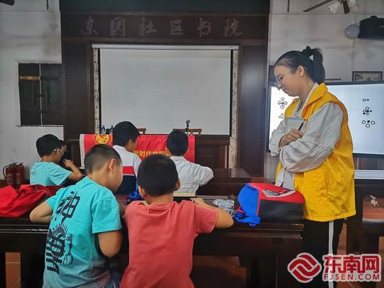 高校志愿者辅导学生做作业(东园社区供图) 11支志愿者服务队 打造特色服务 新时代文明实践重点在“实”,关键在点对点、面对面的文明实践服务上。 东园社区还充分利挖掘本地资源优势,成立11支志愿者服务队,同时携手高校志愿服务力量,在社区针对性开展专业技能知识普及、学生作业辅导等志愿服务,与厦大“知行合义志愿队”、老年人协会等团体,开展社区弱势群体慰问帮扶。 志愿者们还深入孤寡和空巢老人家中,力所能及地帮助解决生活上的一些困难,提供健康服务等,让他们感受到社区大家庭的温暖。 立足东园文化资源优势,社区还充分发挥国防教育基地作用,开展红色教育,弘扬红色文化,举办“书香东园”系列活动,邀请厦大志愿者每周开展一次新时代文明实践站图书阅览辅导。 和时代韵律,倡文明新风,未来,东园社区新时代文明实践站将持续积极动员和引领社区群众共同参与文明实践,整合各类资源,创新方式方法,打通服务群众的“最后一公里”,不断提升社区群众的幸福感、获得感。 |