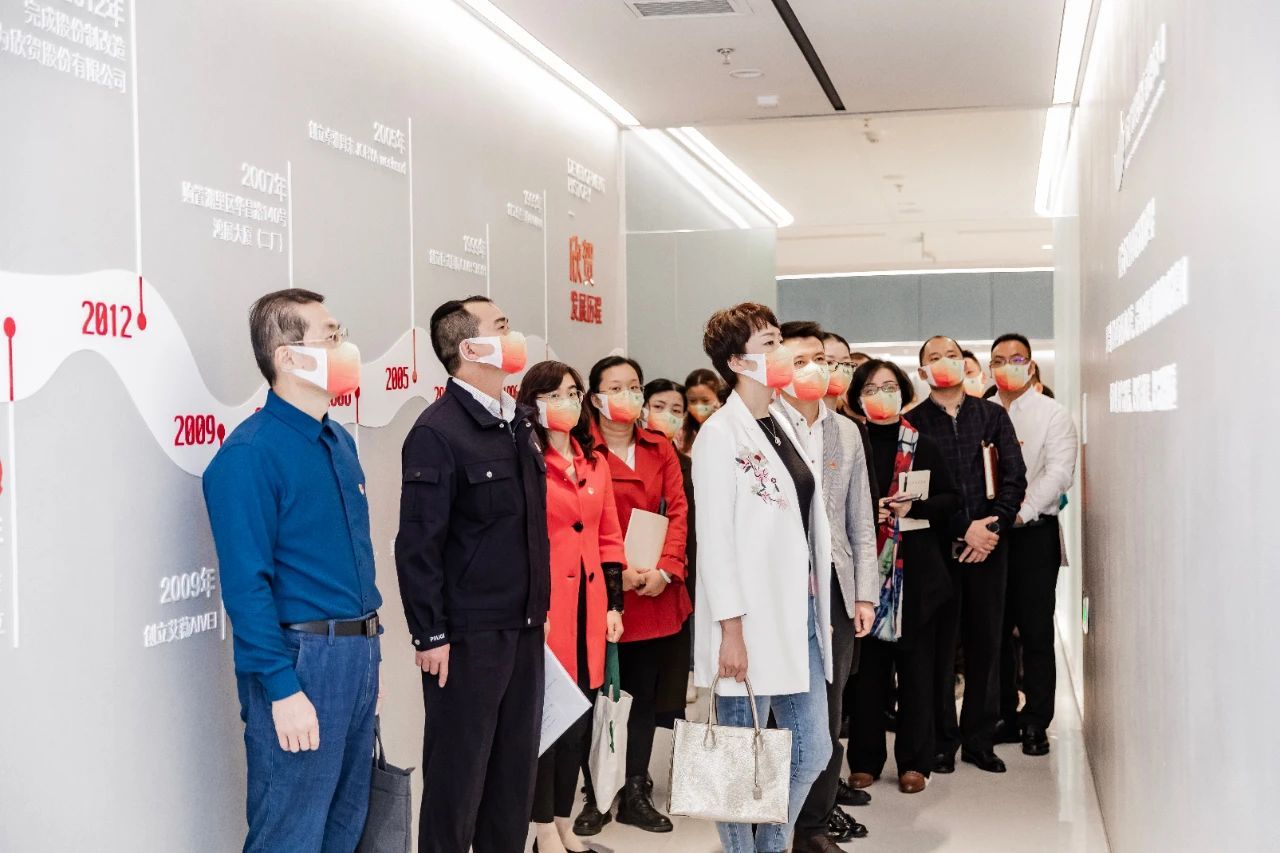 园区非公党委委员、泉舜集团党支部书记 陈春霞 在这么一个特殊的时期,我们有机会跟全体党员同志深入学习党的二十大精神,为我们工作和生活带来激励和鞭策。作为党支部书记,在当前特殊环境下要带领全体党员、全体员工团结奋进、同心同德、艰苦奋斗,发扬企业会拼敢赢的精神;踔厉奋发、勇毅前行,实现企业阶段性的学习目标。 园区非公党委委员、厦门市鹰潭商会党支部副书记 孙文标 作为一名党务工作者,我们的责任更加重大,要把党的二十大精神贯彻落实到位,提高政治站位,时刻与党中央保持一致;不断加强党员意识形态的教育,使党员永远跟党走、听党话,以党建引领企业高质量发展。 河南省新县驻厦门党支部书记 余鹏 作为河南省新县革命老区驻厦门党支部书记,我要发挥党员的先锋模范作用,带领在厦的流动党员,做好工作中的点点滴滴,把党的二十大精神带到工作中去。 园区非公党委委员、鹭燕(福建)集团有限公司党支部书记 张倩 这场专题报告会让我们更加框架性、体系性、深入性地学习党的二十大精神,并为后续组织党员更加深入学习领会党的二十大精神作出了良好的示范。非国有制经济作为中国市场经济的重要组成部分,更要听党话、感党恩、跟党走。鹭燕医药基层党组织会坚持在企业高质量发展中起到推动引领作用。 与会人员共同参观 欣贺研发设计中心三楼 “焕潮空间”党群阵地 了解、学习欣贺党建经验